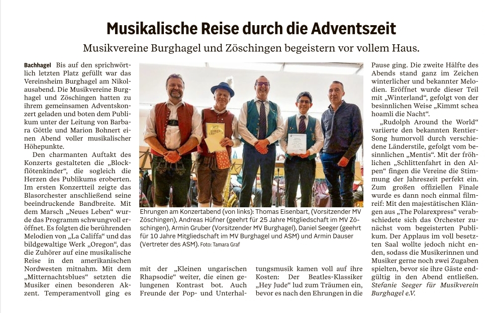 Hier finden sie den Bericht und Zeitungsartikel zu unserem Adventskonzert am 06.12.2025