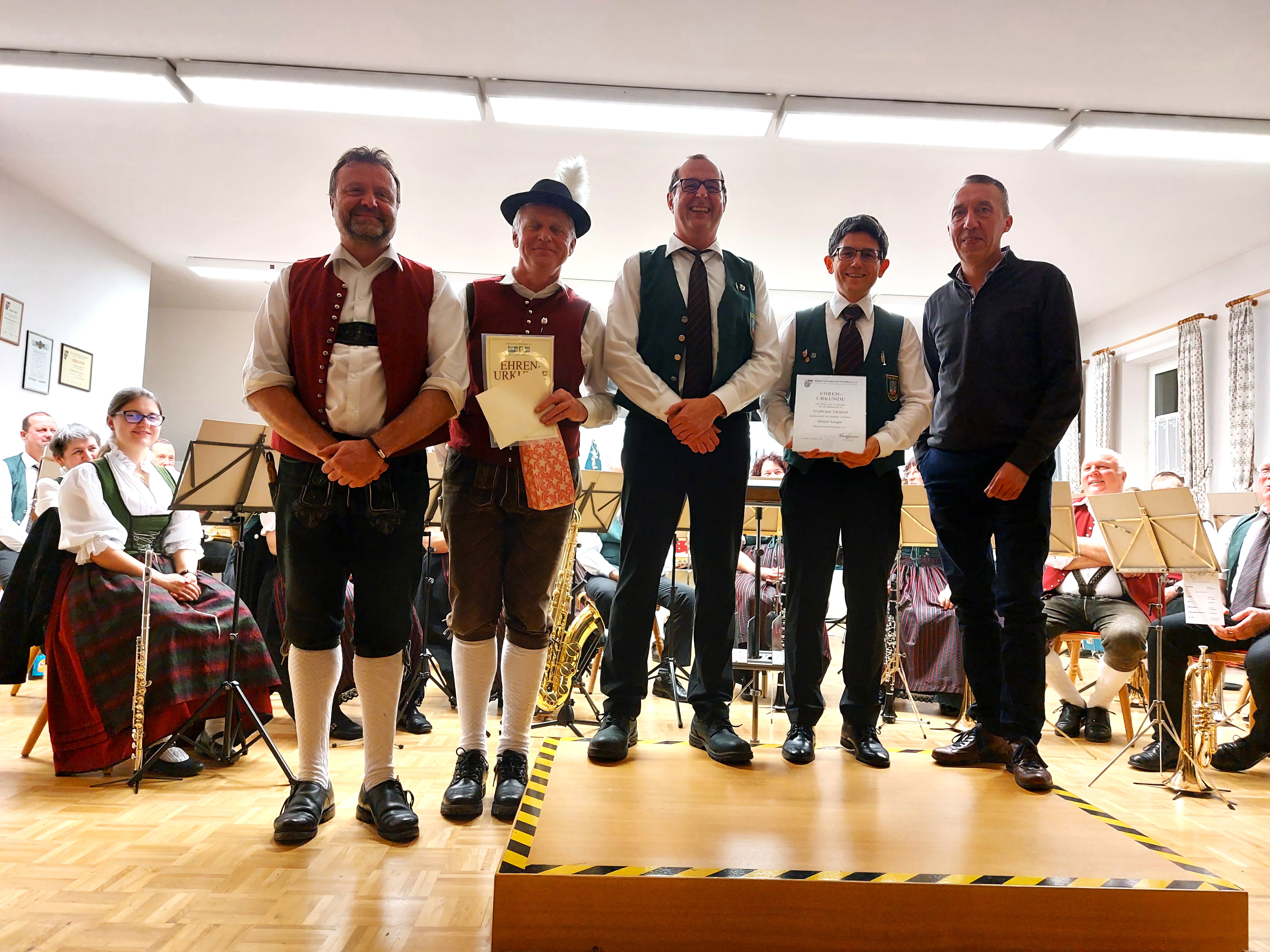 Für 25 Jahre Mitgliedschaft wurden Daniel Birle, Susanne Böhm, Markus Jahn und Herbert Seifert ausgezeichnet. Gisela Deißler erhielt die Ehrung für 40 Jahre Vereinszugehörigkeit. Ein ganz besonderes Jubiläum feierte Paul Ruf, der bereits seit 60 Jahren dem Musikverein die Treue hält.